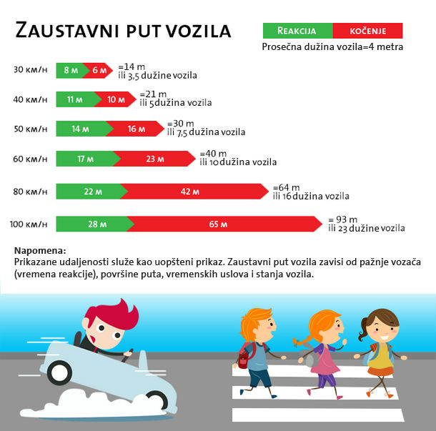 Pogledajte prosečni zaustavni put automobila pa ćete shvatiti da je spora vožnja zaista bitna, jer koliko god dobro vozili - ne možete uticati na zakone fizike.