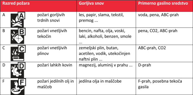 najučinkoviteje in varno pogasite požar. Glede na vrsto gorljive snovi