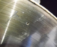 Kot primer je na fotografiji viden poškodovan disk z luknjo na površini,