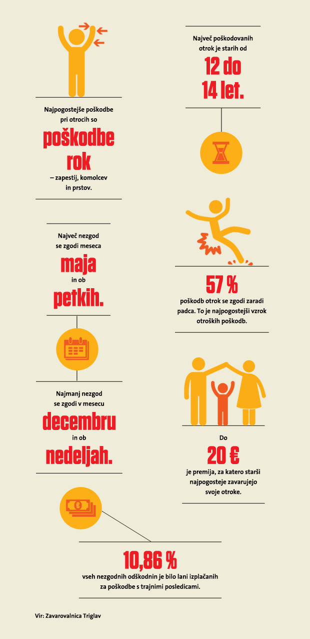 Tudi naši podatki o nezgodah otrok in mladine kažejo, da je temu res tako. Otroci se radi igrajo in raziskujejo, a pogosto ne znajo prepoznati nevarnosti, preden je prepozno. Kljub temu, da je večino tovrstnih poškodb možno preprečiti, preverite, ali vaš otrok potrebuje nezgodno zavarovanje.