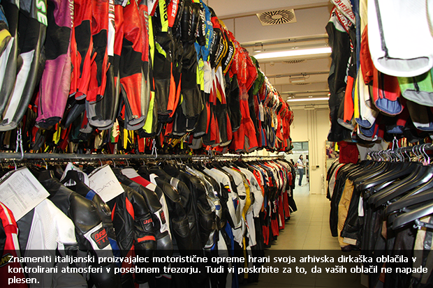 Pozornost namenite tudi opremi. Vsa motoristična oblačila pred prezimovanjem posušite na zraku. Čez zimo redno prezračujte prostor, v katerem hranite oblačila, ker vlaga v zraku predstavlja vir za razvoj plesni. Če na oblačilu opazite plesen, jo lahko dokaj dobro odstranite in zatrete s krpo namočeno v najčistejši, 96-odstotni alkohol, ki ga lahko dobite v lekarni.