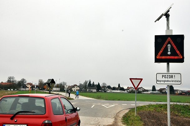 To je aktivni opozorilni sistem, sestavljen iz enega ali več svetlobnih prikazovalnikov in detektorjev, ki zaznavajo prometne udeležence na prednostni in neprednostni cesti. Služi za povečanje varnosti na nepreglednih cestnih odsekih, kot so nepregledna križišča, ostri ovinki, podvozi itd.